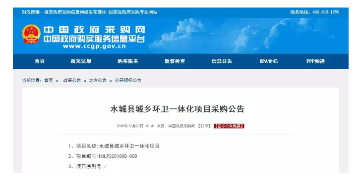 日前,來自中國政府采購網(wǎng)的公開消息稱,貴州省六盤水市水城縣城鄉(xiāng)環(huán)衛(wèi)一體化項目發(fā)布采購公告,該項目采購預(yù)算為12億元,服務(wù)時間為20年。 項目主要采購內(nèi)容: 水城縣城區(qū)范圍內(nèi)的道路清掃保潔管理(含門前三包、人行道、綠化帶、非機(jī)動車道及機(jī)動車道)及城區(qū)與鄉(xiāng)(鎮(zhèn)、街道辦)政府、各園區(qū)管委會所在地及景區(qū)景點...