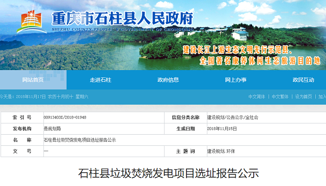 【中國環(huán)保在線 地方新聞】根據(jù)《重慶市生活垃圾焚燒發(fā)電規(guī)劃(2015-2020年)》,提出建設(shè)豐都—石柱垃圾焚燒發(fā)電廠,由于規(guī)劃選址布局調(diào)整,增加石柱縣生活垃圾焚燒發(fā)電廠的規(guī)劃選址,輻射范圍包括豐都縣、石柱縣。 公示項目:石柱縣垃圾焚燒發(fā)電項目選址報告 公示內(nèi)容: 根據(jù)《重慶市生活垃圾焚...