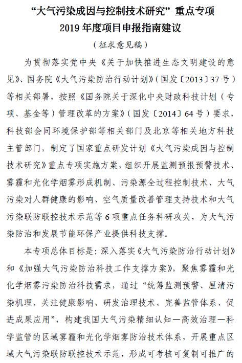 日前,科技部社會發(fā)展科技司發(fā)布了《關(guān)于國家重點研發(fā)計劃“大氣污染成因與控制技術(shù)研究”等6個重點專項2019年度項目申報指南征求意見的通知》,涉及“大氣污染成因與控制技術(shù)研究”、“典型脆弱生態(tài)修復(fù)與保護研究”、“水資源高效開發(fā)利用”等環(huán)保相關(guān)重點專項,詳情如下:關(guān)于國家重點研發(fā)計劃“大氣污染成因與控制...
