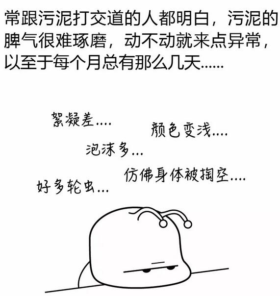 絮凝差、顏色變淺、泡沫多……常跟打交道的人都明白,這些異常就是典型的,至于污泥老化的原因及如何拯救老化的污泥,下面的漫畫就從的氧化代謝說起,為您詳解如何拯救老化的污泥。其實最難的還是如何判斷出污泥老化了,畢竟有不少其他原因也能造成類似的表象,這就需要大量的測量數(shù)據(jù)做基礎(chǔ),然后根據(jù)經(jīng)驗在里面尋找蛛絲馬...