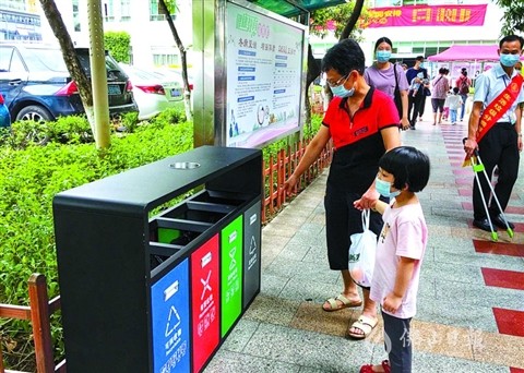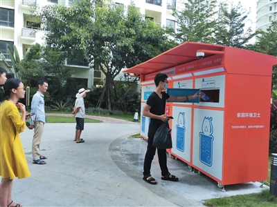 居民正在使用智能垃圾分類柜投放垃圾。符吉茂 攝“既環(huán)保,又能換錢,還能提高我們的垃圾分類意識和分類正確率,一舉多得,這個智能垃圾分類柜值得點贊?!?月26日,家住崖州區(qū)保利·崖州灣小區(qū)居民候東將一個礦泉水瓶投進(jìn)“大胃貓”智能垃圾分類柜后笑著說。日前,為助力三亞市生活垃圾分類工作,建設(shè)“無廢城市”,崖...
