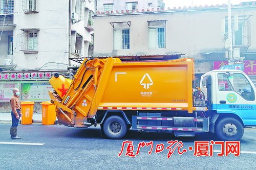 今年,廈門市要實現(xiàn)生活垃圾100%公交化直運(yùn)。圖為“其他垃圾”收運(yùn)車公交化收運(yùn)垃圾。盡管天氣炎熱,但是,當(dāng)人們靠近湖里區(qū)江頭街道溫莎公館垃圾投放點時,幾乎聞不到臭味,地面也見不到垃圾?!岸〞r定點”分類投放垃圾,不僅進(jìn)一步改善了小區(qū)的人居環(huán)境,同時,也提升了人們的衛(wèi)生意識、家園意識。全市加快建設(shè)高顏值...