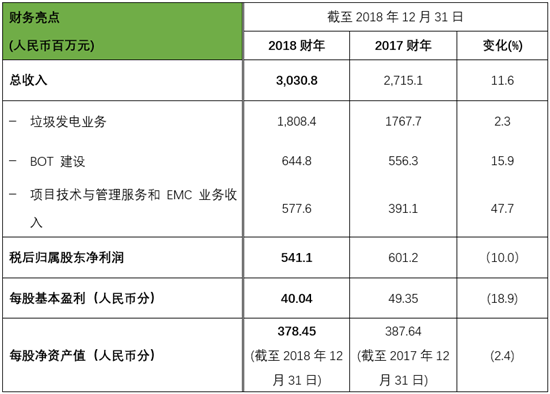 集團(tuán)各業(yè)務(wù)版塊收入增加,2018財年集團(tuán)總收入達(dá)到人民幣30.3億元。稅后歸屬股東凈利潤為人民幣5.4億元。在2018年12月31日和2017年12月31日,總發(fā)行股數(shù)為1,443,246,800和1,221,581,000。(新加坡,2019年3月3日) - 中國領(lǐng)先的垃圾焚燒發(fā)電(“WTE”)運...