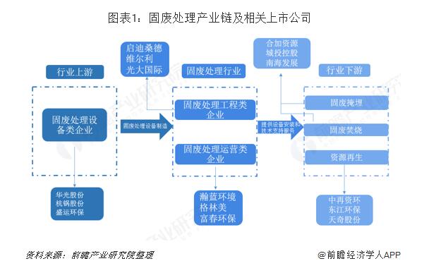 我國固廢處理行業(yè)已經(jīng)形成了較為成熟的產(chǎn)業(yè)鏈,其中上游行業(yè)為固廢處理裝備制造;中游行業(yè)按照公司主營業(yè)務(wù)類別不同可以分為固廢處理工程類企業(yè)和固廢處理運(yùn)營類企業(yè);下游行業(yè)為固廢處置衍生行業(yè),主要分為固廢掩埋、固廢焚燒和資源再生。上游行業(yè)較為成熟,為固廢處理行業(yè)打下良好的基礎(chǔ);中游行業(yè)參與者多為上市公司,行...