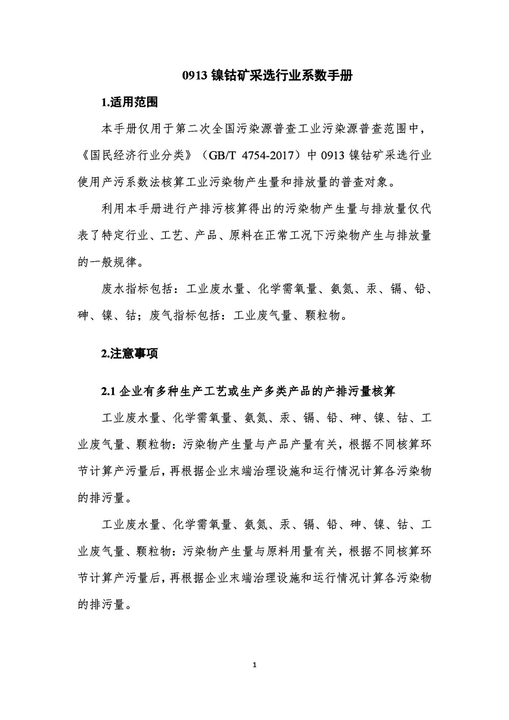 導(dǎo)讀:第二次全國污染源普查 鎳鈷礦采選行業(yè)系數(shù)手冊(初稿) 本手冊僅用于第二次全國污染源普查工業(yè)污染源普查范圍中,《國民經(jīng)濟(jì)行業(yè)分類》(GB/T 4754-2017)中0913鎳鈷礦采選行業(yè)使用產(chǎn)污系數(shù)法核算工業(yè)污染物產(chǎn)生量和排放量的普查對象。利用本手冊進(jìn)行產(chǎn)排污核算得出的污染物產(chǎn)生量與排放量僅代表...