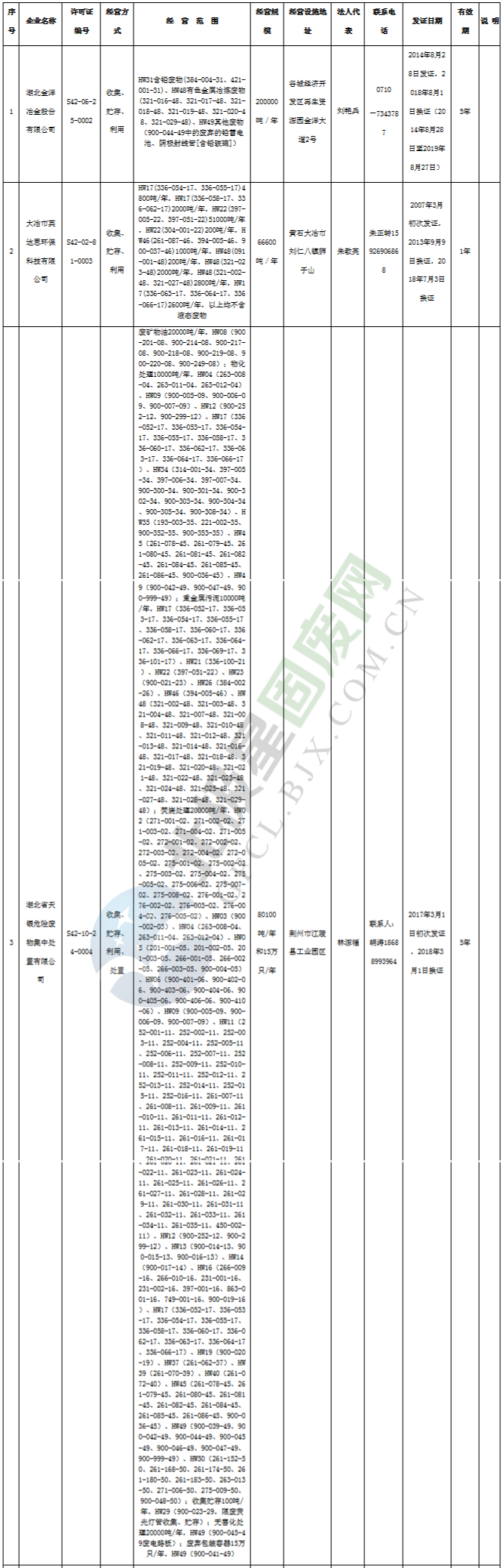 日前湖北省生態(tài)環(huán)境廳發(fā)布了《湖北省危險廢物經(jīng)營許可證》單位名錄(截至2019年2月19日,共125家)。具體內(nèi)容如下:原標(biāo)題:《湖北省危險廢物經(jīng)營許可證》單位名錄(截至2019年2月19日,共125家)