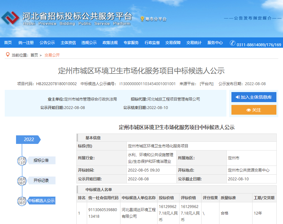 8月8日,超19億元的定州市城區(qū)環(huán)境衛(wèi)生市場化服務(wù)項(xiàng)目公布中標(biāo)候選人公示,河北昌潤達(dá)環(huán)境工程有限公司排名第一;8月9日,約5.5億元三河市城鄉(xiāng)環(huán)衛(wèi)一體化項(xiàng)目又被北京環(huán)境有限公司和北京首創(chuàng)環(huán)境投資有限公司攜手?jǐn)孬@。至此,河北省今年已開標(biāo)的億級環(huán)衛(wèi)項(xiàng)目總金額已超119億元,加上在招標(biāo)項(xiàng)目,河北省今年環(huán)衛(wèi)...