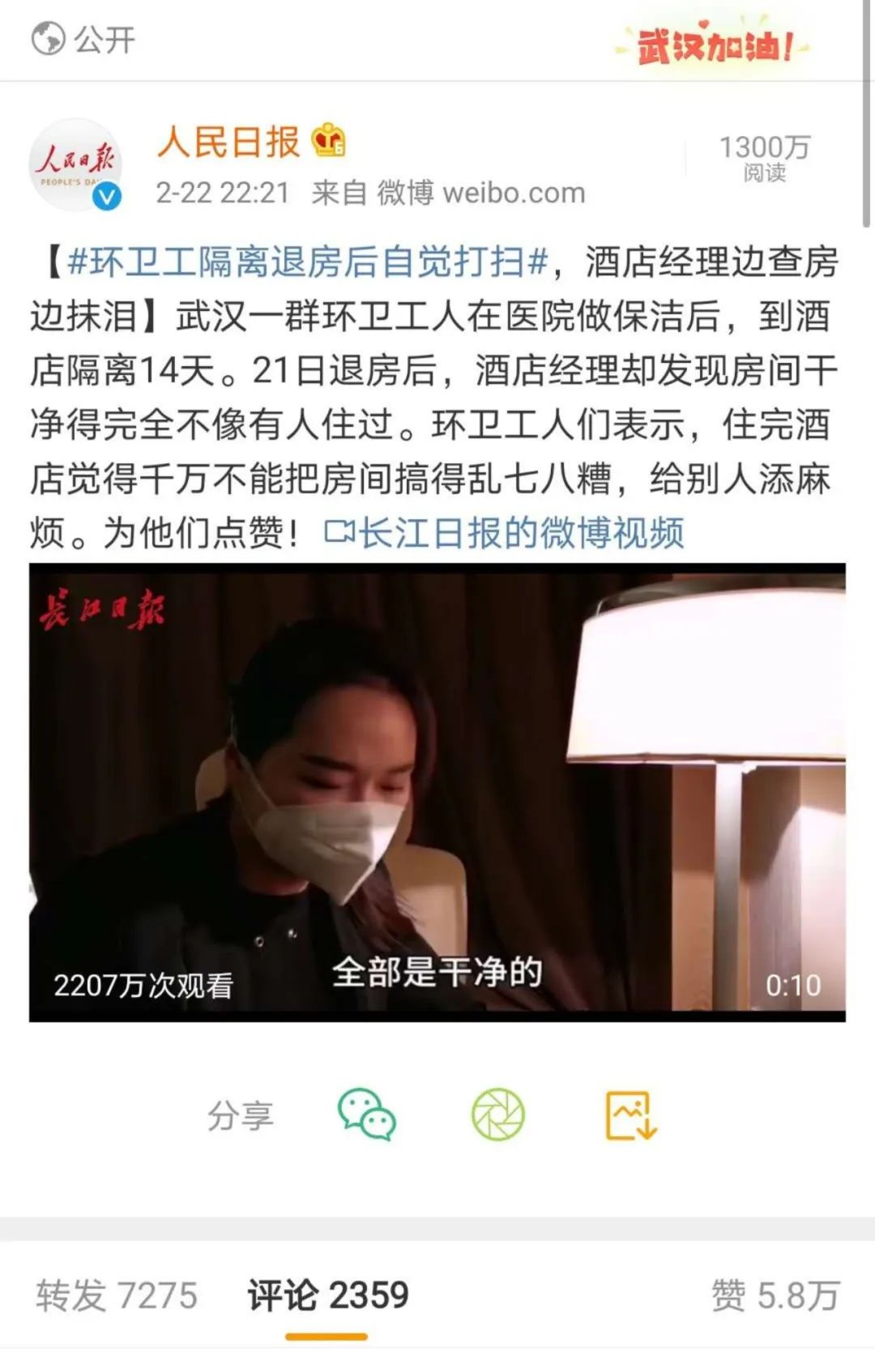 “她們也許沒有讀過很多書,干著城市最臟最累的活,沒想到她們的心靈卻那么美好!”21日晚,沌口長江大酒店市場銷售部經(jīng)理程渝發(fā)的一條朋友圈引起大家的關注。退房后,環(huán)衛(wèi)工人自覺打掃酒店沌口長江大酒店住著武漢經(jīng)濟技術開發(fā)區(qū)的兩批環(huán)衛(wèi)工人。這群環(huán)衛(wèi)工因為之前在協(xié)和醫(yī)院西院保潔,出來必須要隔離14天。21日,環(huán)...