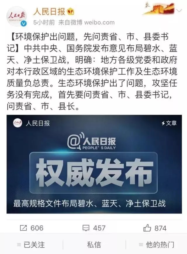 昨日,人民日報發(fā)布《這件事,習(xí)近平視為“根本大計”》、《環(huán)境保護腰桿硬起來》、《中央環(huán)保督察嚴禁“表面整改”》等數(shù)篇文章。而近日,中央紀委則首次集中通報了生態(tài)責任追究的典型問題。在第47個世界環(huán)境日,以如此猛烈的方式表達對環(huán)境的關(guān)注,無疑在釋放嚴肅查處破壞環(huán)境違紀違法行為的強烈信號,表明了中央對治理...