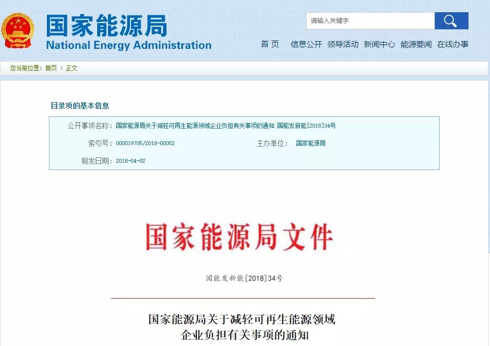 2018年4月26日,國家能源局官網(wǎng)公布《關(guān)于減輕可再生能源領(lǐng)域企業(yè)負(fù)擔(dān)有關(guān)事項(xiàng)的通知》,進(jìn)一步規(guī)范可再生能源行業(yè)管理,減輕可再生能源企業(yè)(含其他機(jī)構(gòu)和個(gè)人投資者)投資經(jīng)營負(fù)擔(dān),促進(jìn)可再生能源成本下降。 國家能源局近期發(fā)布的《可再生能源電力配額及考核辦法征求意見稿》,提出可再生能源電力配額按照各省級...