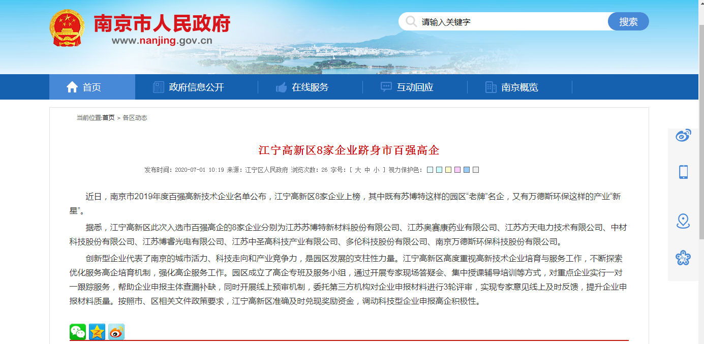 ——新的榮譽、新的“百強”、新的起航,萬德斯入選“江蘇省百強創(chuàng)新型企業(yè)”、“南京市百強高新技術(shù)企業(yè)”近日,江蘇省科技情報研究與江蘇省科技發(fā)展戰(zhàn)略研究院分別發(fā)布了“南京市2019年度百強高新技術(shù)企業(yè)”名單、“2019年江蘇省百強創(chuàng)新型企業(yè)”名單,南京萬德斯環(huán)保科技股份有限公司同時位列兩張榜單之中,成為...