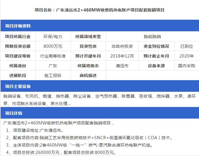 2019年1月份最新的全國脫硫脫硝工程項目匯總情況,包括SCR脫硝項目、SNCR脫硝項目等,詳情如下: (來源:中項網(wǎng))