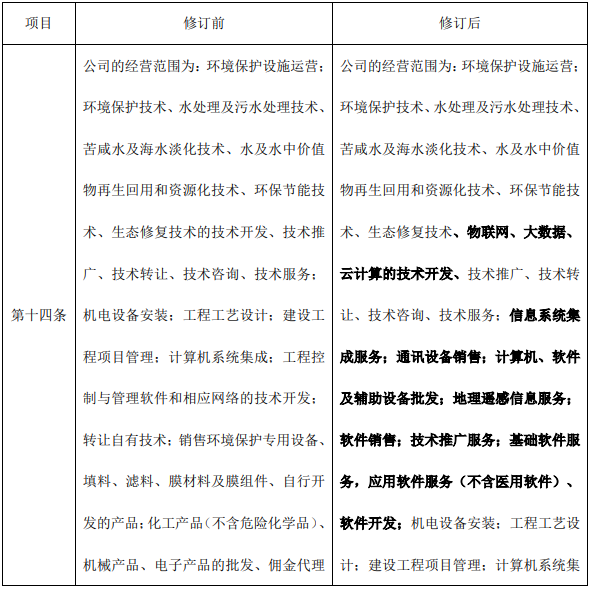 金科環(huán)境股份有限公司(以下簡稱“公司”)于 2021 年 6 月 9 日召開第二屆董事會第五次會議,審議通過了《關(guān)于變更公司經(jīng)營范圍、修訂<公司章程>并辦理工商變更登記的議案》,上述議案尚需提交公司 2021 年第一次臨時股東大會審議。具體情況如下: 一、變更公司...